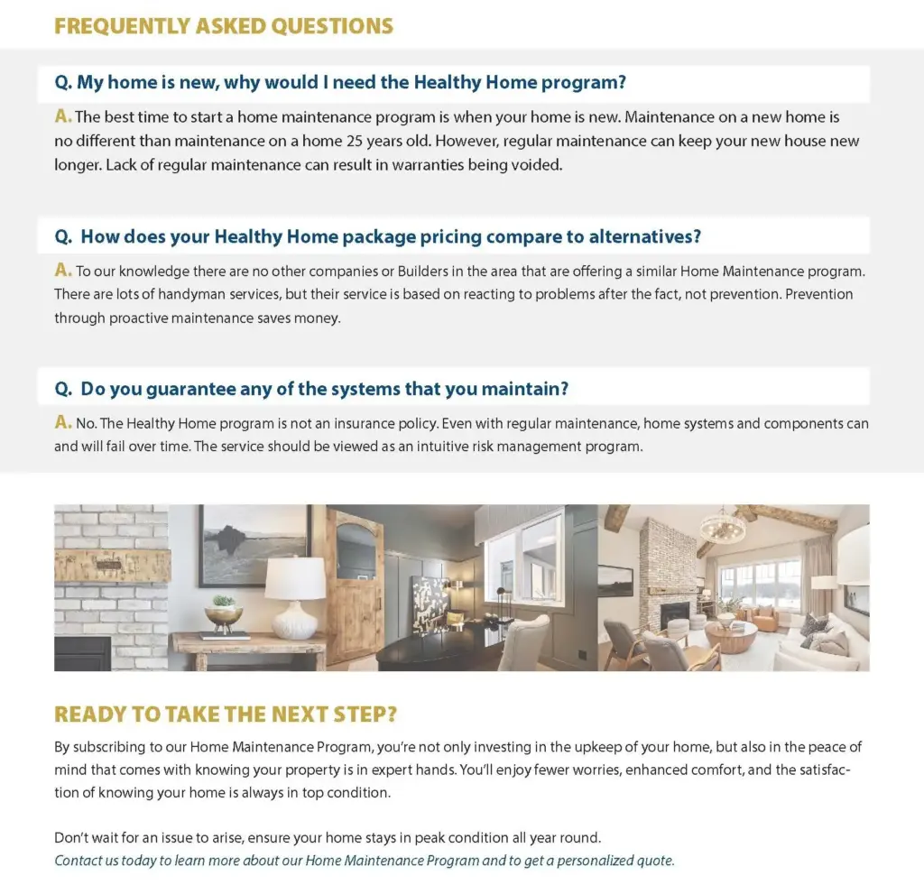 This program goes far beyond simple upkeep. It is a proactive, builder-backed maintenance solution that protects your property, safeguards the value of your home, and helps ensure your warranties remain valid by preventing issues caused by being overlooked.