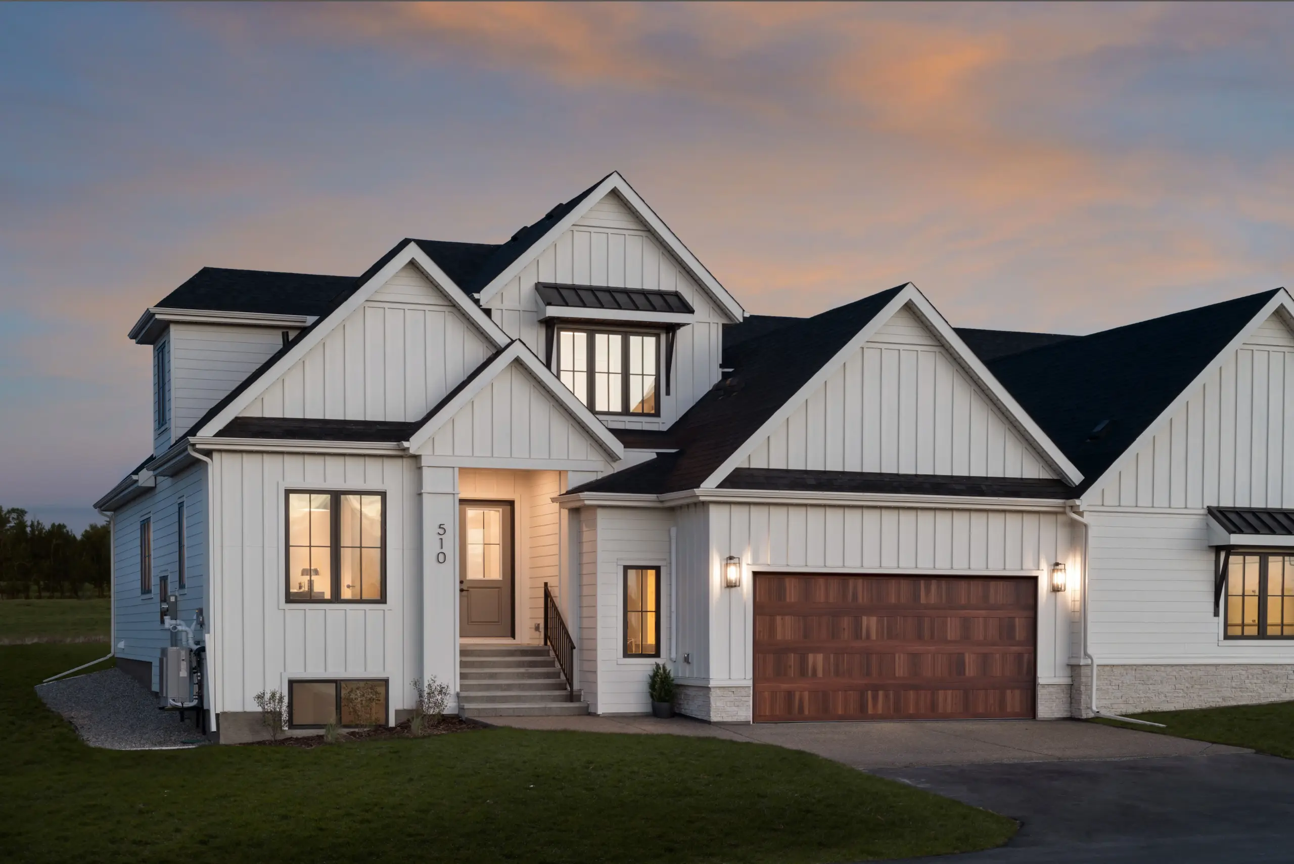 Discover the perfect blend of style and comfort in this modern farmhouse villa. The expansive primary suite serves as your private retreat, complete with a stunning ensuite that exudes luxury. The open-concept main floor invites effortless entertaining and everyday living, featuring a versatile flex room that can adapt to your needs – whether it’s a home office or cozy den. With its inviting design and thoughtful layout, this villa is ideal for those seeking both elegance and functionality in a serene setting.